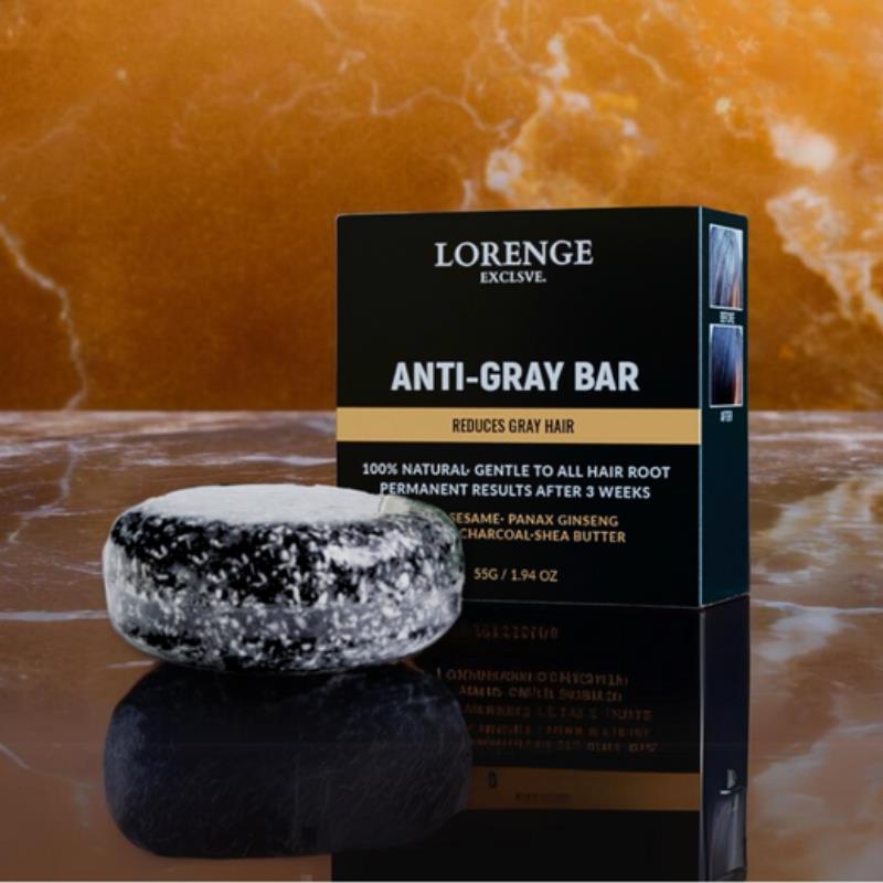 El Jabón Anti-Gray™ Lorence estimula la melanina, restaurando el color progresivamente.